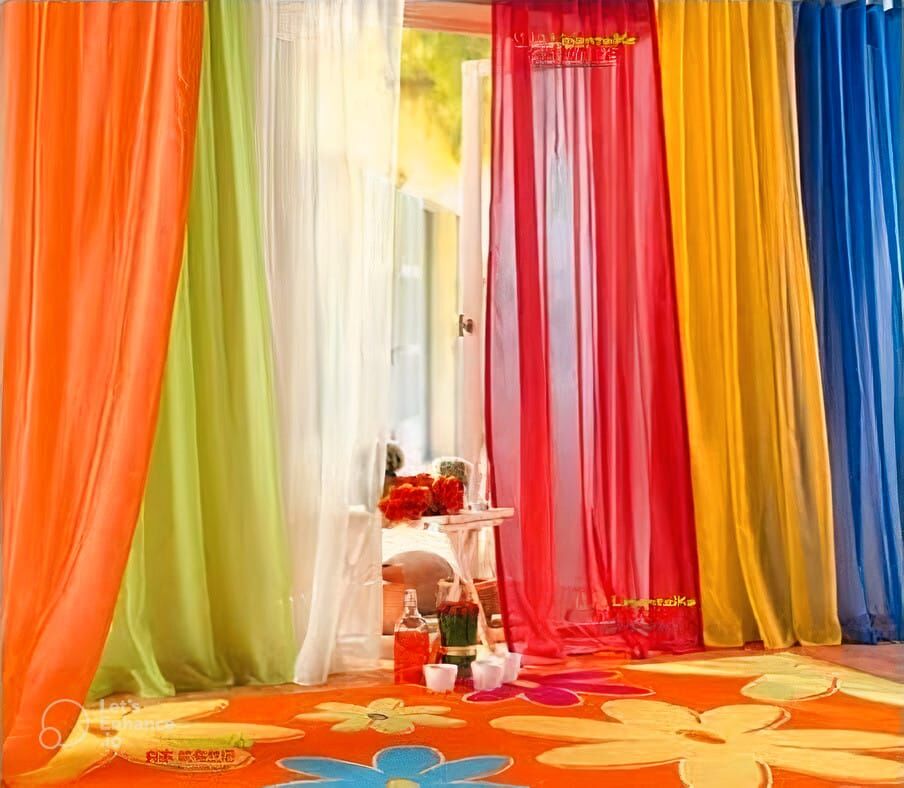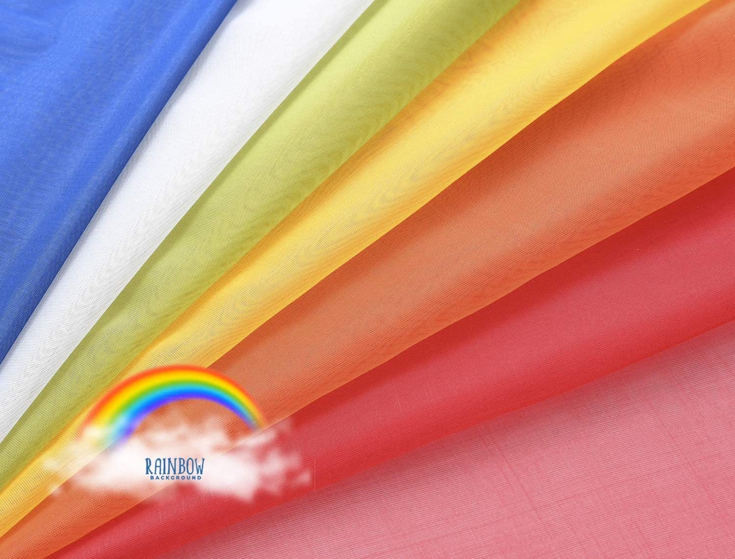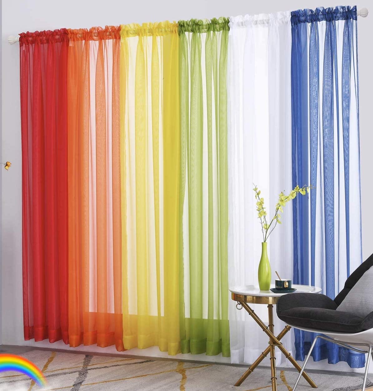 6 PIECE LONG RAINBOW SHEER CURTAIN WINDOW PANELS. THIS PACKAGE CONTAINS 1 ORANGE, 1 LIME, 1 RED, 1 YELLOW, AND 1 NAVY SHEER PANEL. EACH SHEER MEASURES 54″ Wide (5 different lengths available), SO WE HAVE THE SIZE FOR YOU! BRING THIS NEW DECOR AND BRIGHTEN ANY ROOM WITH IT. THIS SPECIAL PRICE WILL ONLY BE AROUND FOR A SHORT PERIOD OF TIME, BUY NOW BEFORE ITS TOO LATE!