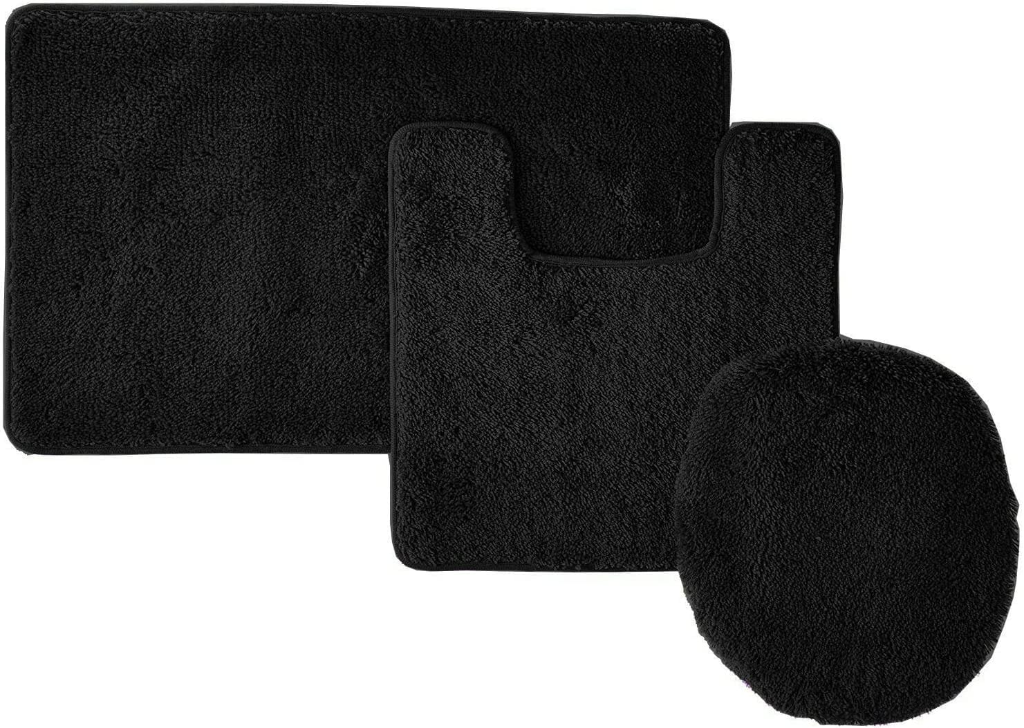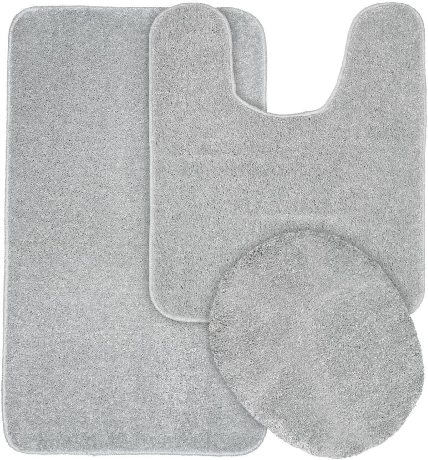 Empire Home Bathroom Rug Set– 3 Piece- Solid Colors – Bath Mat Contour Rug Toilet Lid Cover – Soft Rug