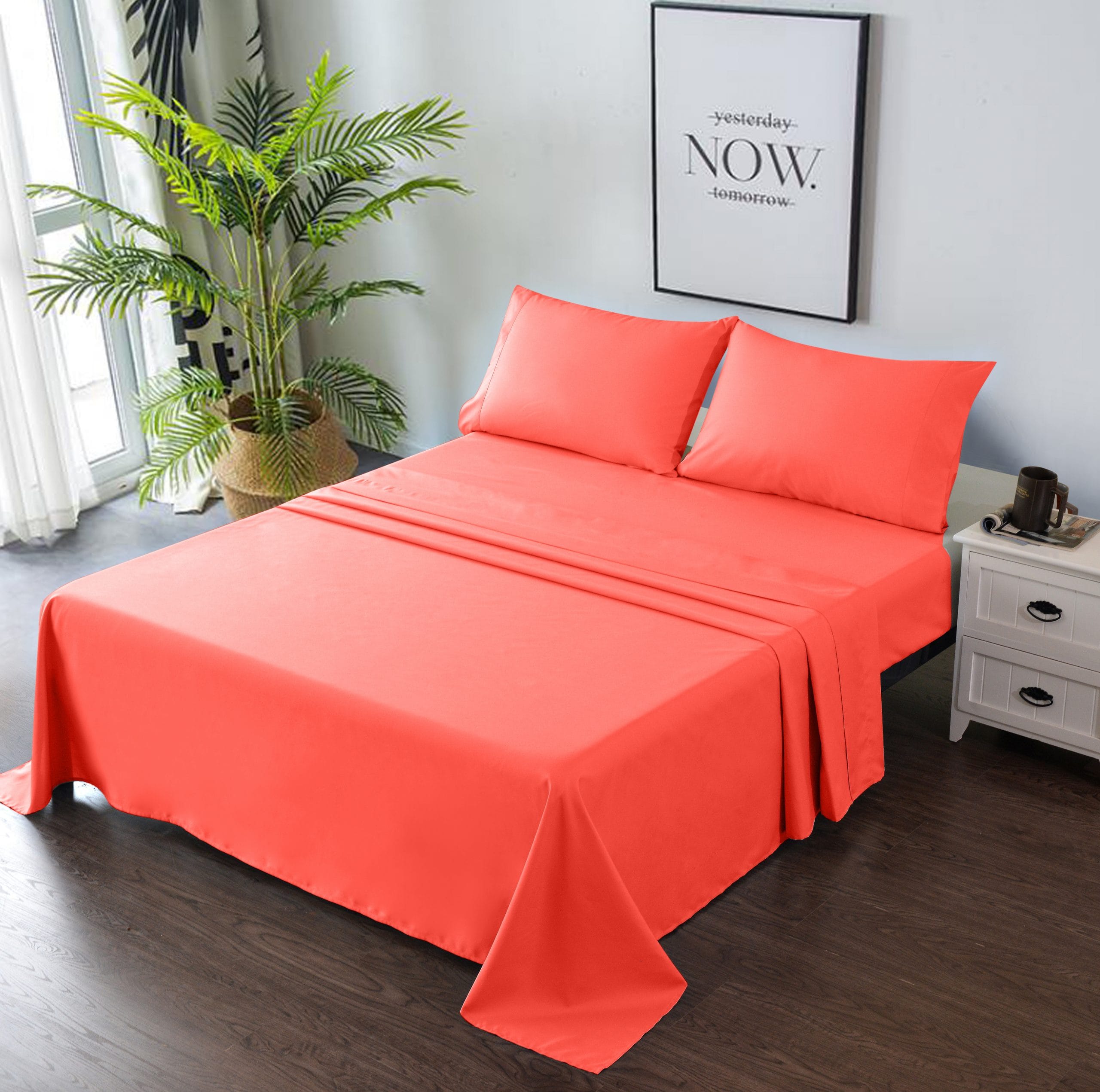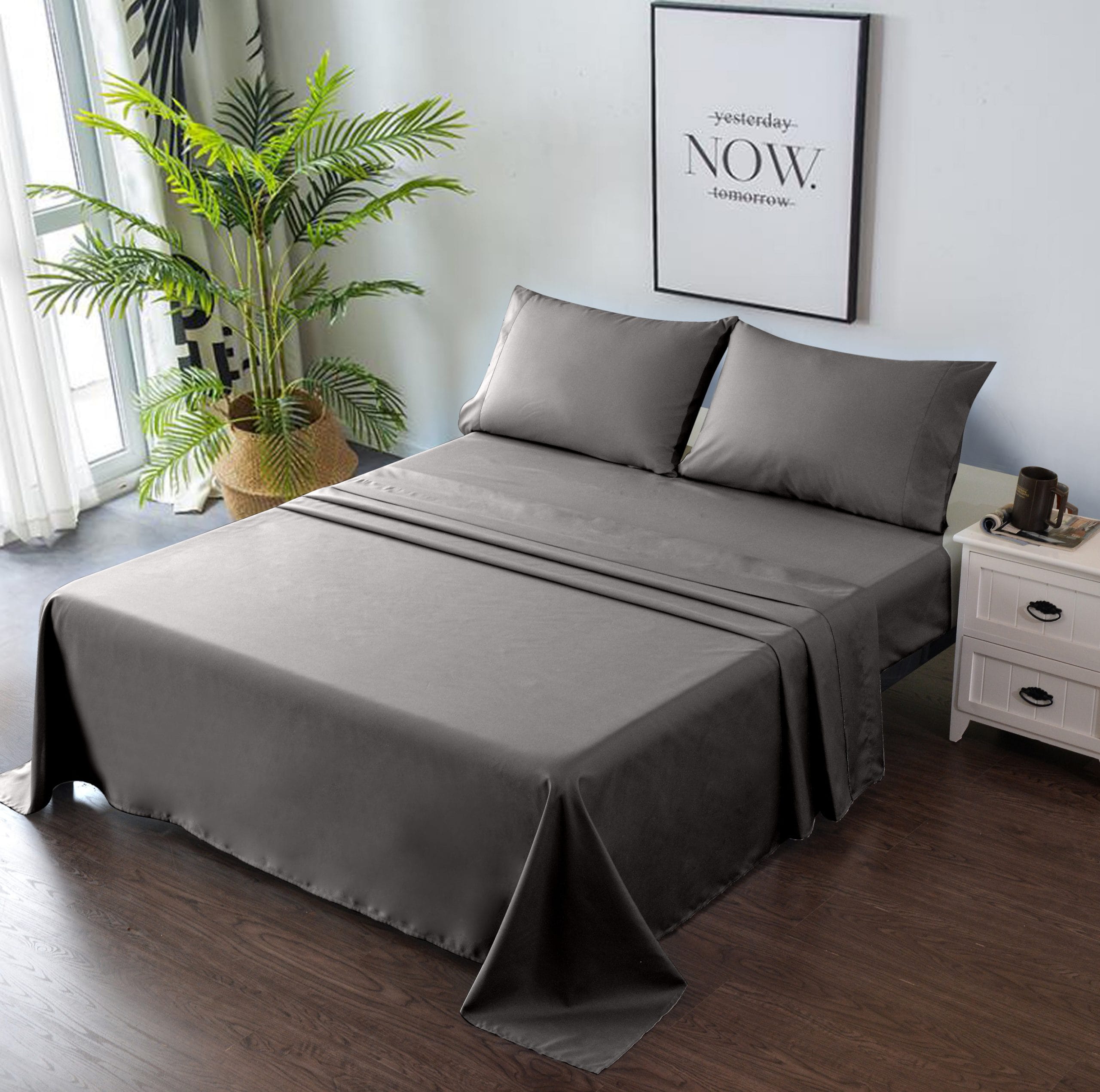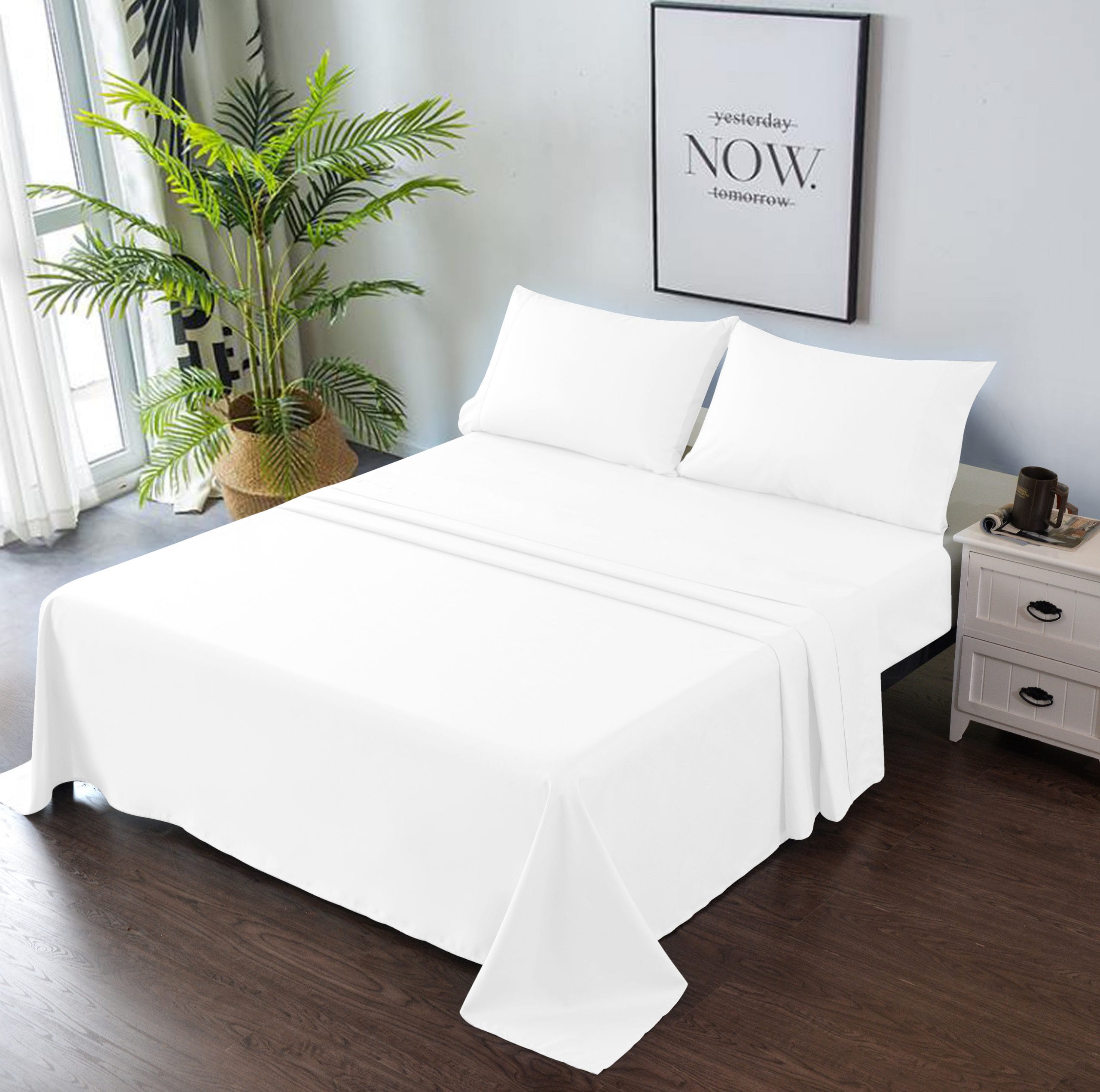4 PIECE BED SHEET SET – Deep Pocket Fitted Sheet Flat Sheet 2 Pillow Cases