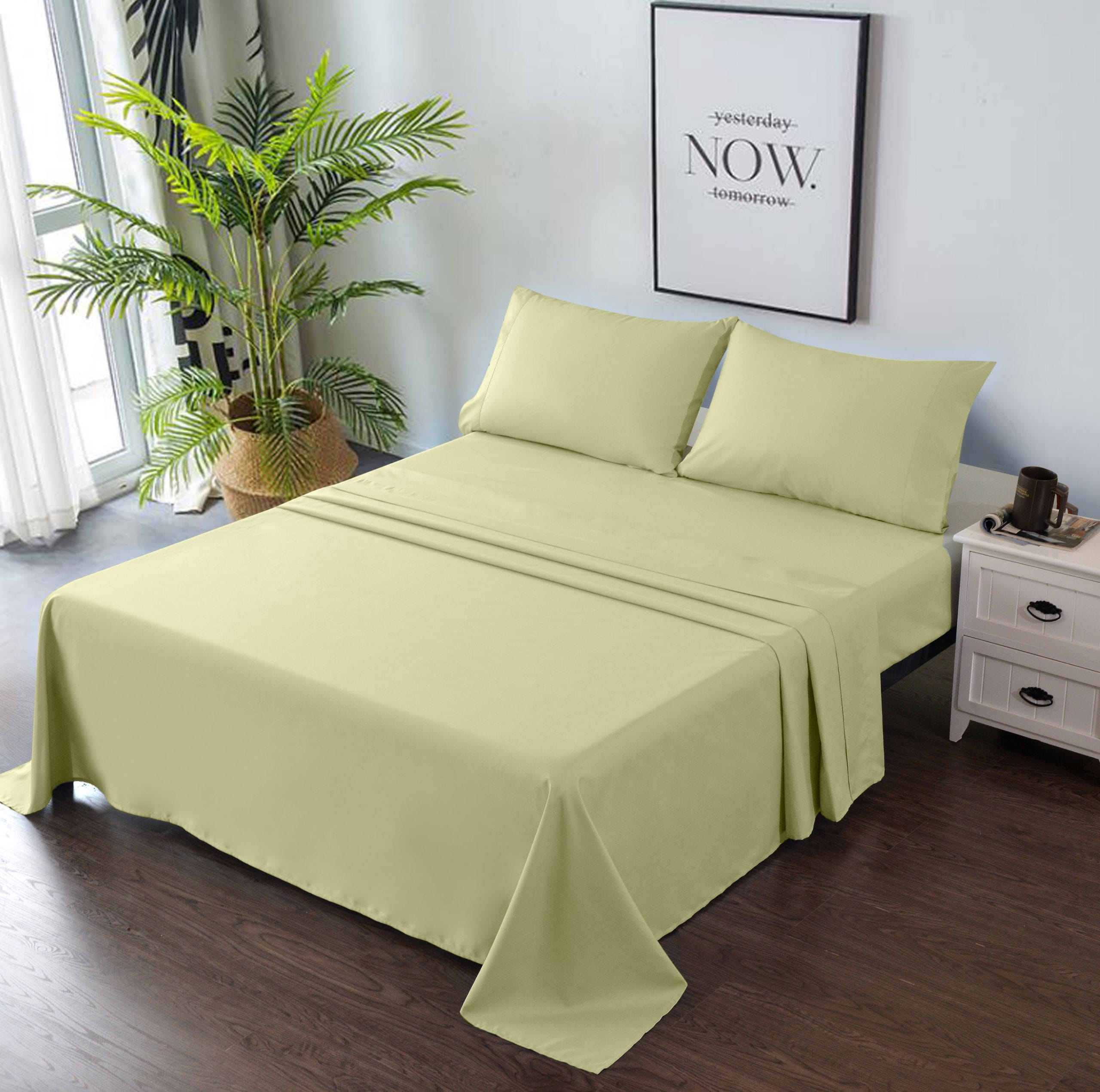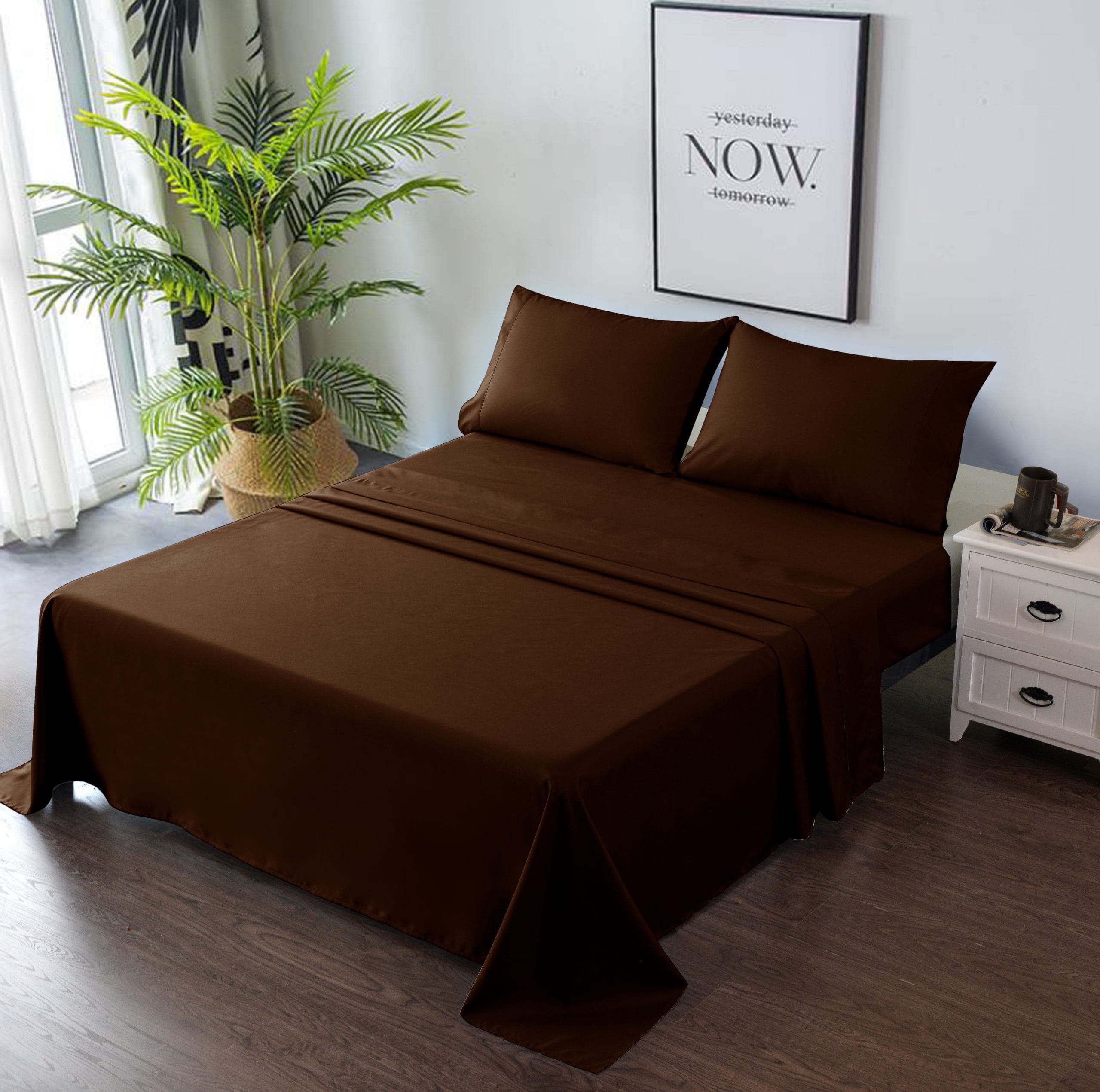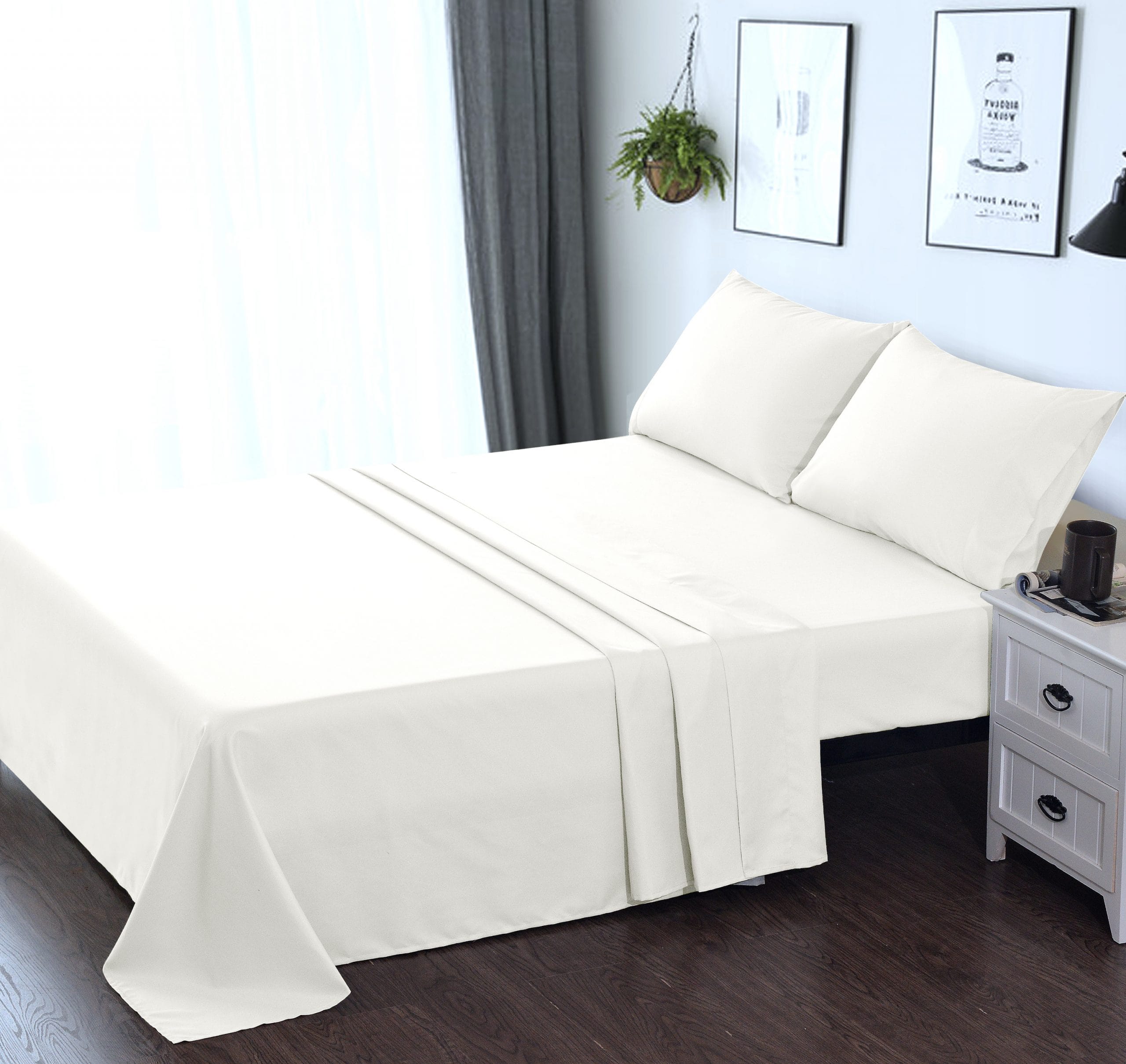 4 PIECE BED SHEET SET – Deep Pocket Fitted Sheet Flat Sheet 2 Pillow Cases